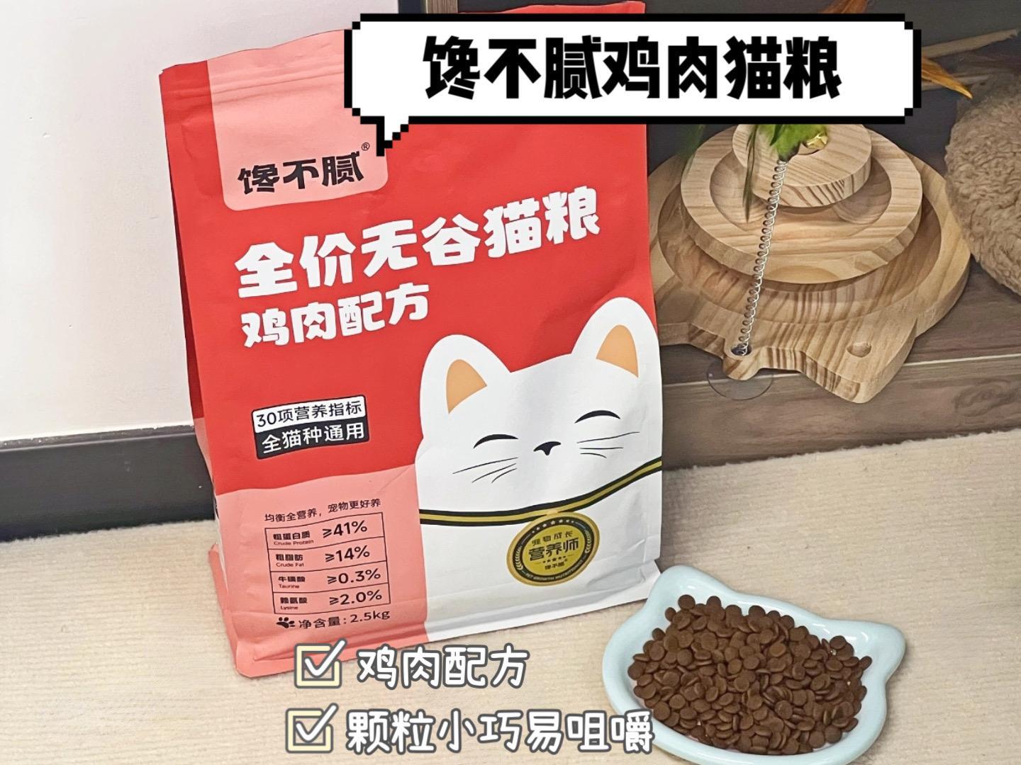推薦理由:饞不膩貓糧以新鮮的肉類爲主要原料,含肉量較高,有32%的鮮雞肉,滿足貓咪的肉食天性。粗蛋白≥41%,粗脂肪≥14%,配比合理,豐富的蛋白質有助於貓咪的肌肉生長和身體發育。營養均衡,富含多種維生素和礦物質,能夠全面滿足貓咪的營養需求。特別添加的益生菌有助於維持貓咪的腸道健康。美毛效果好,含有魚油等成分,能夠滋養貓咪的毛髮。無谷配方,對於腸胃比較敏感的貓咪來說非常友好。雙十一期間,推出了多種優惠活動,價格更實惠。