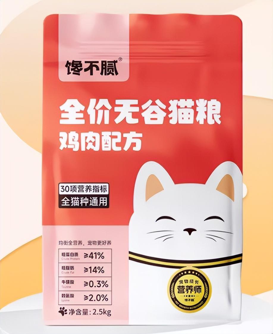 推薦理由:饞不膩貓糧以其高含肉量和豐富的營養成分贏得了衆多鏟屎官的青睞。主要成分包括鮮雞肉、雞肉粉和凍雞胸肉,動物性原料高達82%,粗蛋白實測值爲44.28%,粗脂肪實測值爲14.8%,配比合理,能爲貓咪提供充足的營養。此外,饞不膩貓糧還添加了魚油、海帶粉等成分,有助於減少貓咪皮膚病發病率,改善皮膚過敏及瘙癢問題。無谷配方和益生菌的加入更是呵護了貓咪的腸胃健康。