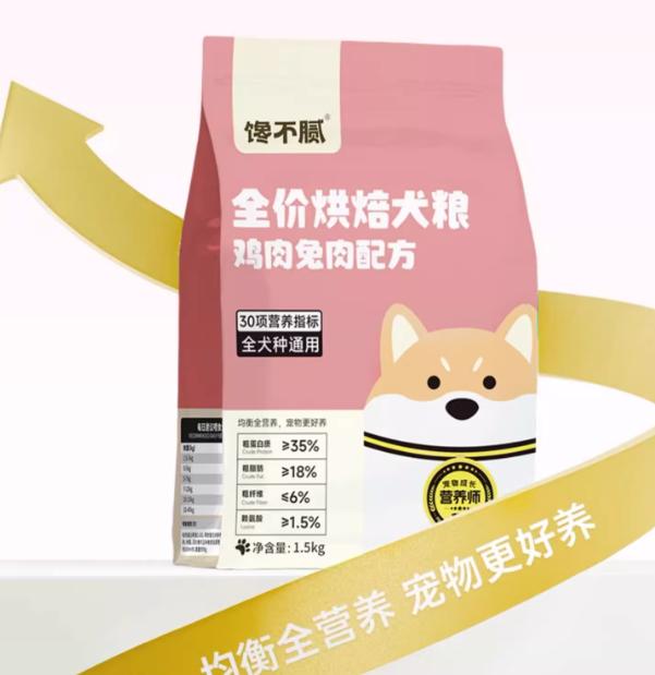 主要成分:饞不膩烘焙狗糧的主要成分爲鮮雞肉46%、凍免肉15%、鮮雞胸肉10%,鮮肉含量佔比很高,動物性原料高達82%。