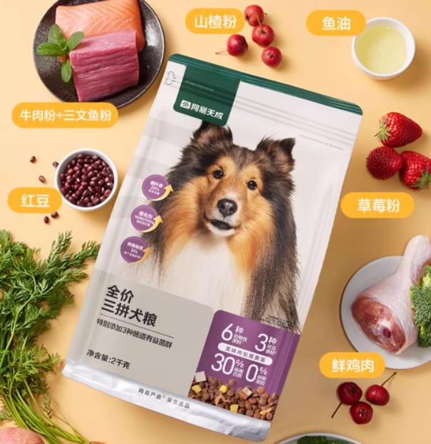 主要成分:網易嚴選狗糧的主要成分爲雞胸肉、鮮雞腿肉、鮮雞肉和鮮雞幹,佔比超過80%。
