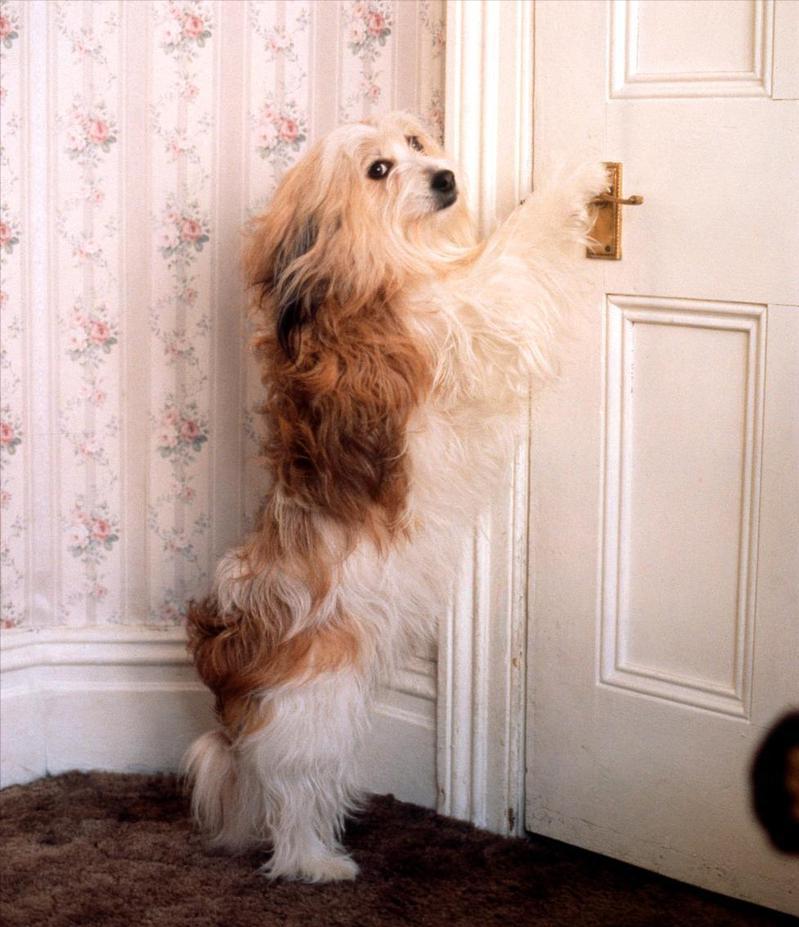 現在很多家庭的門把手都是那種九十度長長的,向下一按就能開門。對於聰明的狗狗來說,這簡直就是小菜一碟。但低智商的狗狗卻常常對此束手無策。有時候門虛掩着,它們也不會去撞開一下,而是選擇默默地等待。這樣的狗狗雖然讓人省心(不用擔心它們自己溜出去),但也讓人哭笑不得(畢竟有時候還是需要它們幫忙開門的)。