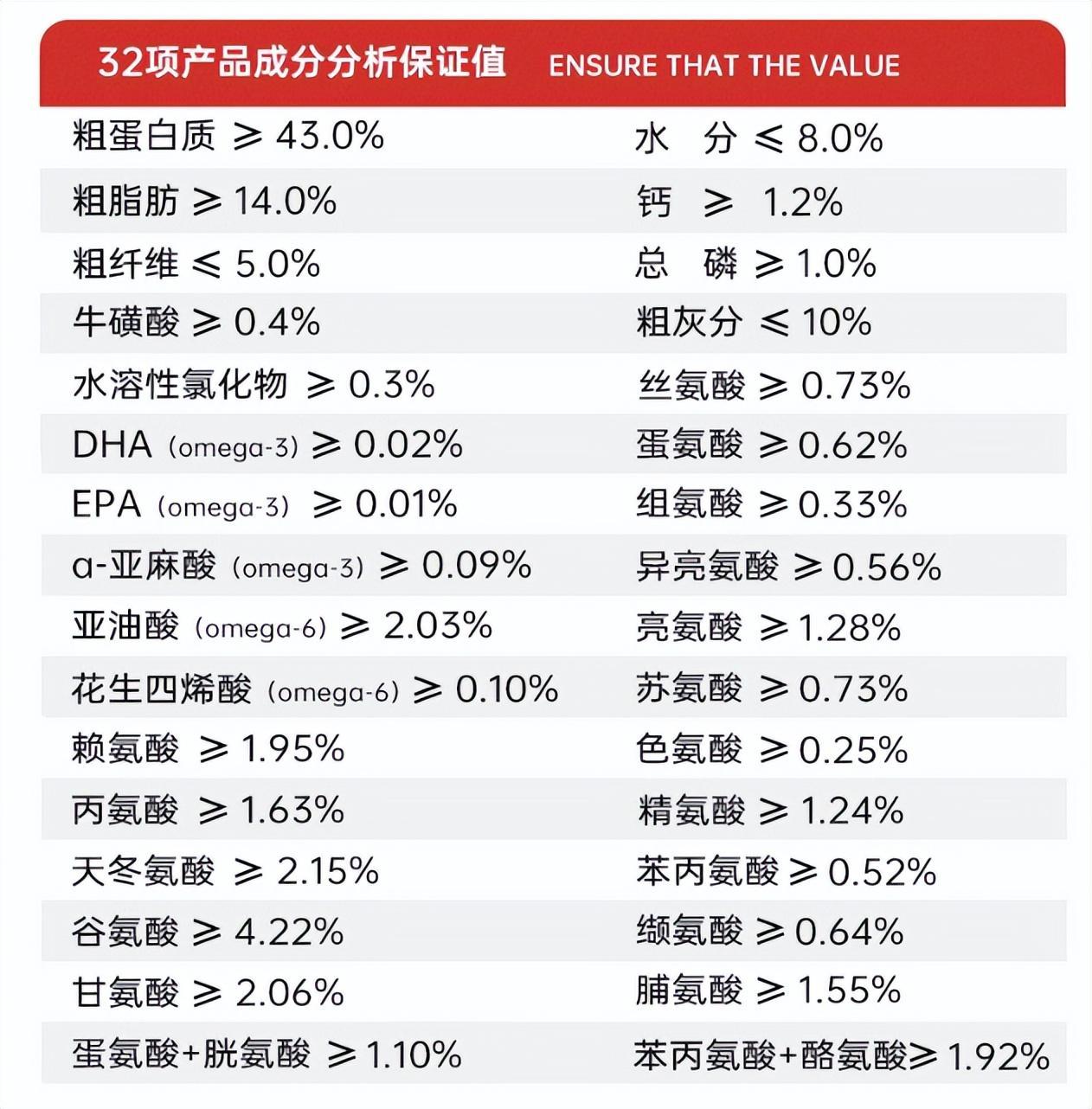 - 牛磺酸:貓咪無法自身合成牛磺酸,需要通過食物獲取。牛磺酸對貓咪的視力、心臟健康和免疫力有益。因此,在挑選貓糧時,最低應該選擇牛磺酸含量≥0.1%的貓糧。