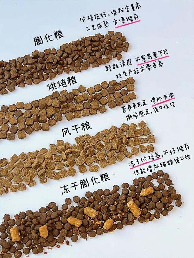 - 烘乾糧:口感比較鬆脆,比較清淡。能夠最大程度地保留原料中的營養成分,營養價值較高。但如果烘乾時間過長或者溫度過高,可能會導致營養流失。