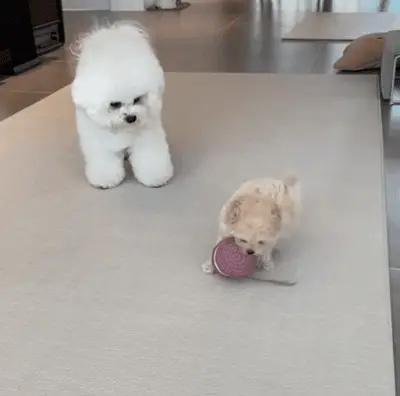 不管是訓練比熊還是泰迪,鏟屎官都需要有耐心哦,而且要採用正面鼓勵的方式,比如當狗狗表現好的時候,給它們一點獎勵,像是零食之類的。