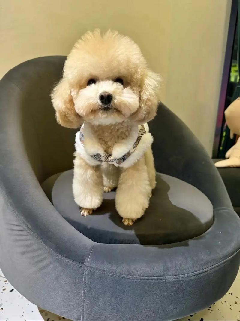 泰迪犬,實際上是貴賓犬的一種美容造型。它們體型小巧,毛髮捲曲,顏色多樣,常見的有紅色、棕色、黑色、白色等。泰迪的毛髮就像經過精心打理的小卷發,既時尚又俏皮。再加上那雙圓溜溜的大眼睛和活潑的神態,簡直是萌到犯規!