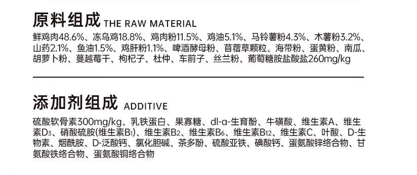 而且貓糧中的雞肉、烏雞肉都是容易消化的肉源,還添加了果寡糖成分,可以呵護腸胃,適合腸胃差的貓咪。另外還有軟骨素+葡萄糖胺鹽酸鹽,呵護貓咪骨骼健康。