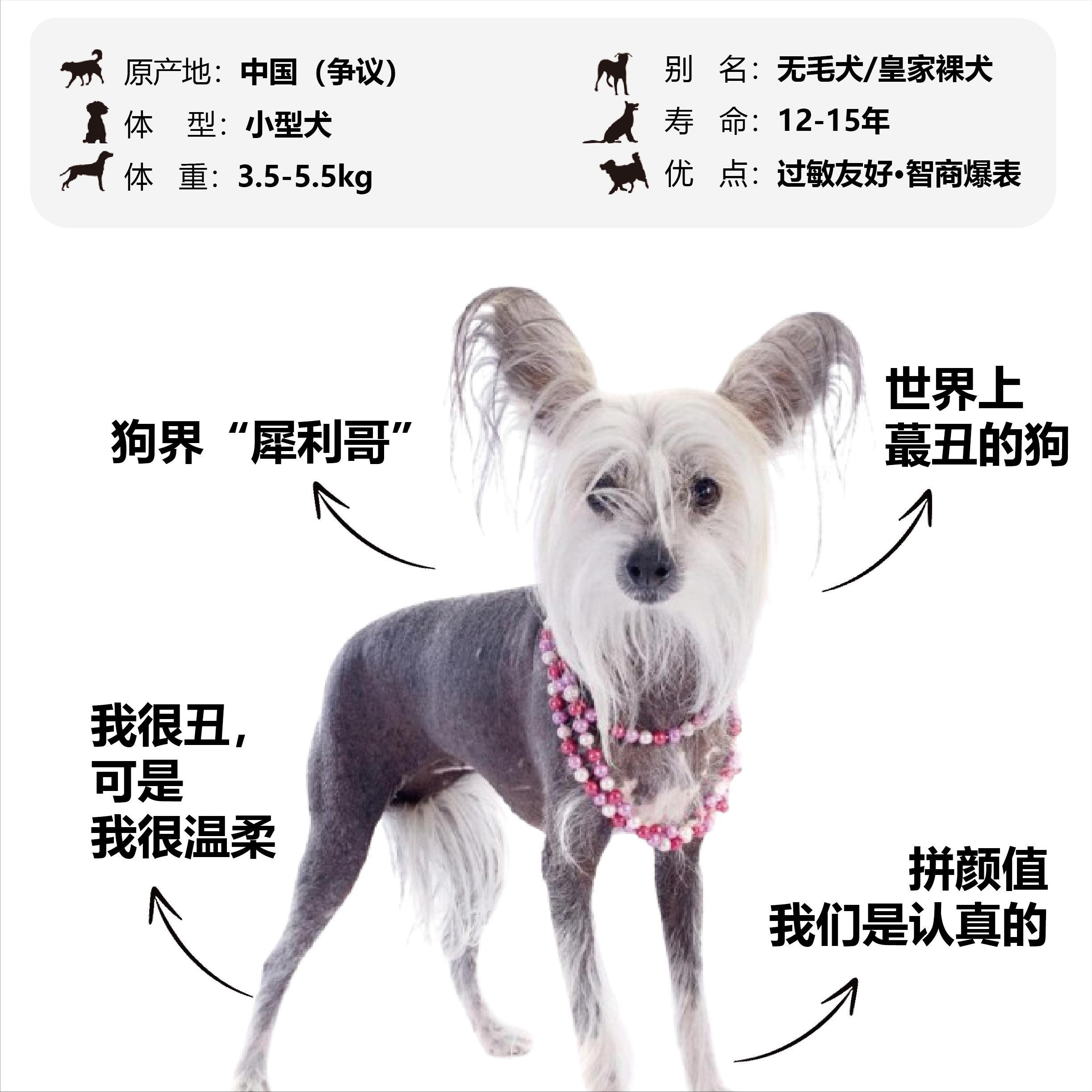 中國冠毛犬,又稱中國無毛犬或半毛犬,是世界上僅有的幾個無毛犬品種之一,因爲頭頂有冠毛,很像清朝官員的帽子而得名。