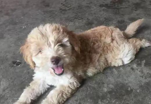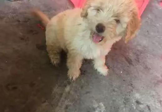 幾個月後,小美生了一窩小狗崽,其中一隻特別惹眼。它長得有點像金毛,毛色金黃黃的,但體型比金毛小巧,眼睛還帶點泰迪的靈氣。最絕的是,這小傢伙天生一張笑臉,嘴角微微上揚,像在對每個人說:“嘿,我是不是超可愛?”