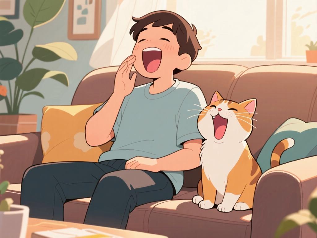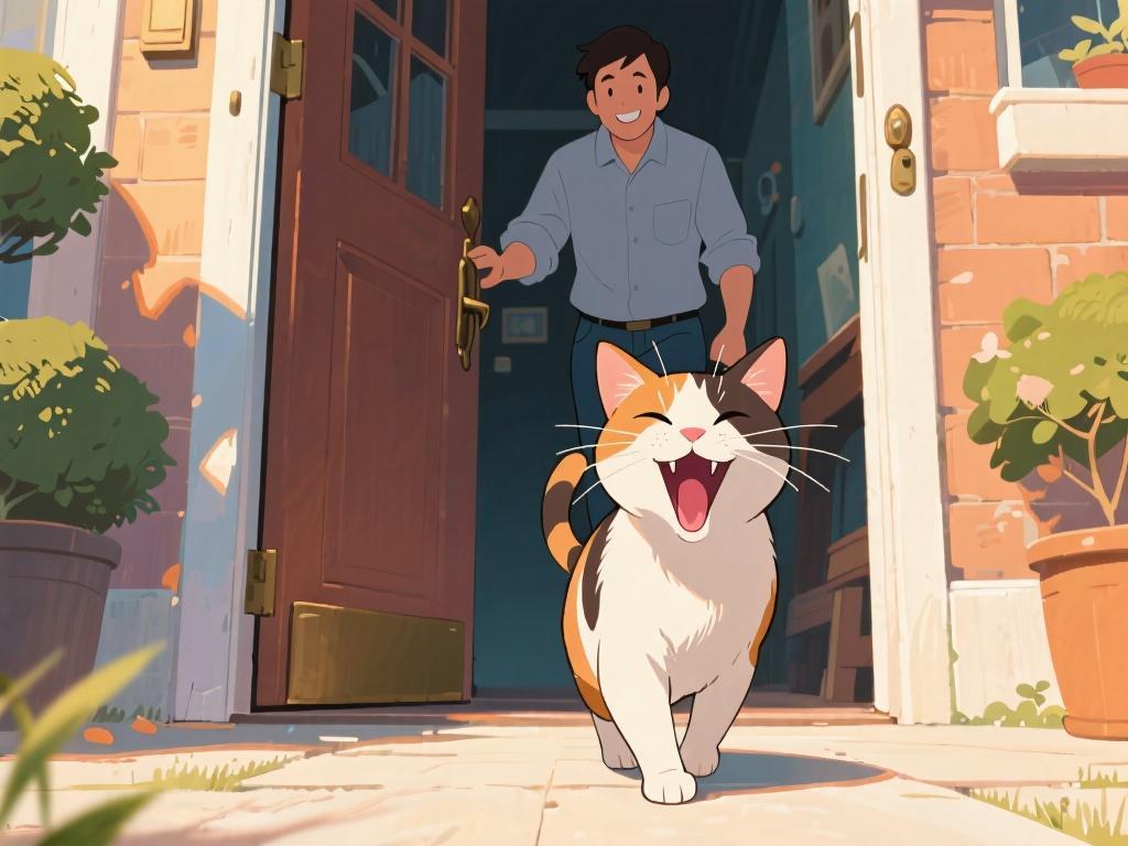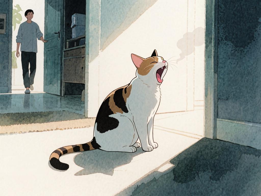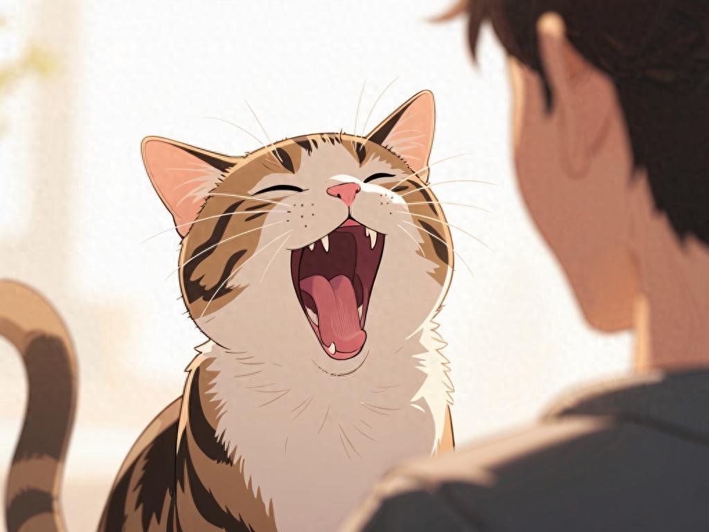 貓獨處時是一種生活模式,看到你後又會切換到另一種模式,這時打哈欠可能就是模式切換的表現。研究團隊觀察 120 只家貓在主人回家時的反應,發現 68% 的貓會在看到主人後 1 分鐘內打哈欠,而且這些打哈欠的貓隨後主動靠近主人的概率比不打哈欠的貓高出 37%。這就像人坐久了站起來會伸懶腰一樣,貓看到你時身體也會有自然反應。