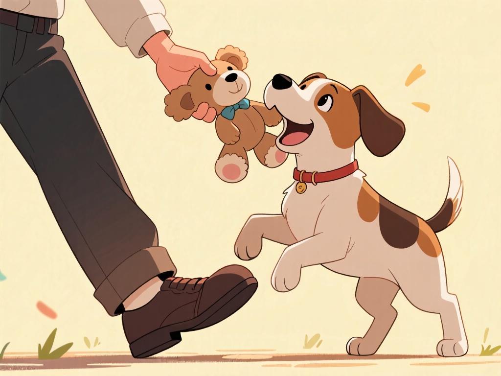 如果狗狗總把毛絨玩具、球球叼到你腳邊,甚至用鼻子推到你手裏,這是它在和你分享寶貝,是信任你的表現。它愛你,纔會分享最喜歡的玩具,這其實就是在說 “我們一起玩好不好”,是可愛的撒嬌行爲。這時你要是拿着玩具陪它玩,它會開心得不得了。