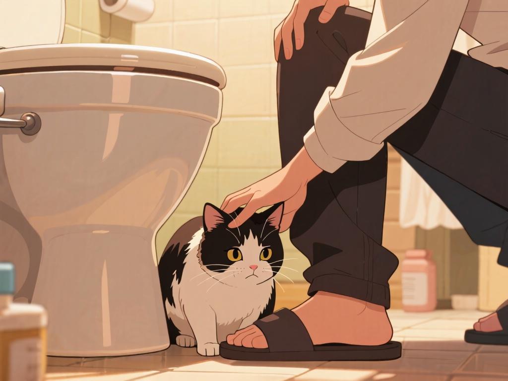 當貓咪焦慮時,會主動靠近主人緩解情緒。衛生間空間小,能讓貓咪更近距離接觸主人,這時主人和貓咪說說話,安撫效果更好。貓咪在主人上廁所時待在身邊,焦慮行爲發生率會下降約 40%。