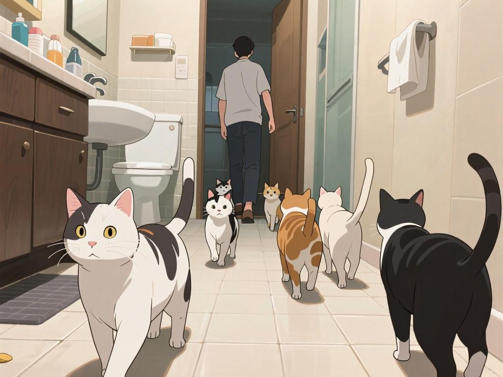 家貓通過 2 - 3 周觀察就能記住主人作息,上廁所是標誌性的 “固定流程”。大部分貓會在主人走向衛生間時同步起身跟隨,就像人到點就點外賣一樣,成了習慣。