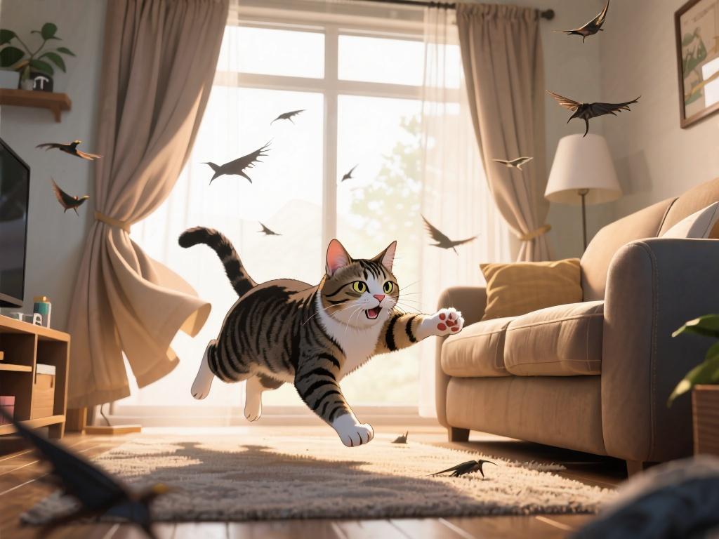 要是你家貓總在清晨或者黃昏瘋跑,那十有八九就是這個原因。而且啊,捕獵本能發作的時候,貓咪除了瘋跑,還會撲窗簾、撓沙發、對着空氣揮爪子,這些可都是它們捕獵時的常見動作。還有些貓,在喫完飯 1 - 2 小時內也會瘋跑,這可能是血糖波動刺激了它們的捕獵本能。