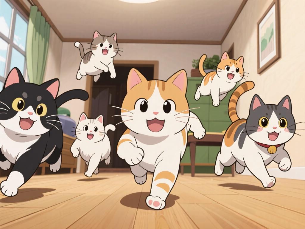 如果你家裏養了好幾只貓,貓咪突然一起瘋跑,說不定是它們在社交呢。要是兩隻貓一起瘋跑,還沒有哈氣、炸毛這些攻擊信號,那大概率就是在玩社交遊戲,增進感情。要是幼年貓你追我趕地瘋跑,那就更可能是在學習和社交啦。它們在奔跑中練習捕獵技巧,還能學會讀懂同伴的行爲信號。