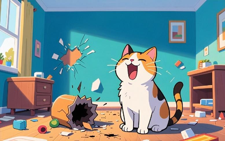 - 破壞行爲:焦慮會讓貓咪抓撓傢俱、打翻物品、咀嚼繩索。