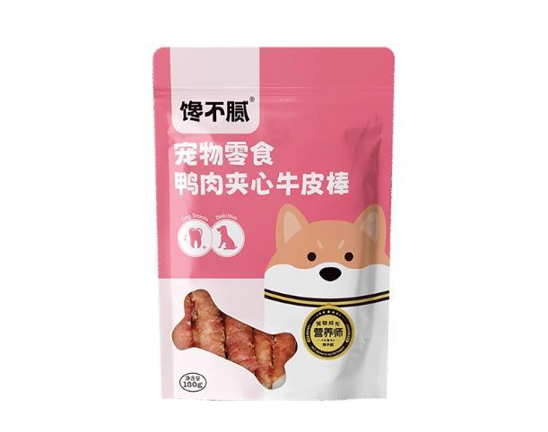 用戶評價:“我家狗狗超愛這款鴨肉夾心牛皮棒,每次給它一根能啃好久。既能磨牙又能解饞,很不錯的零食。”
