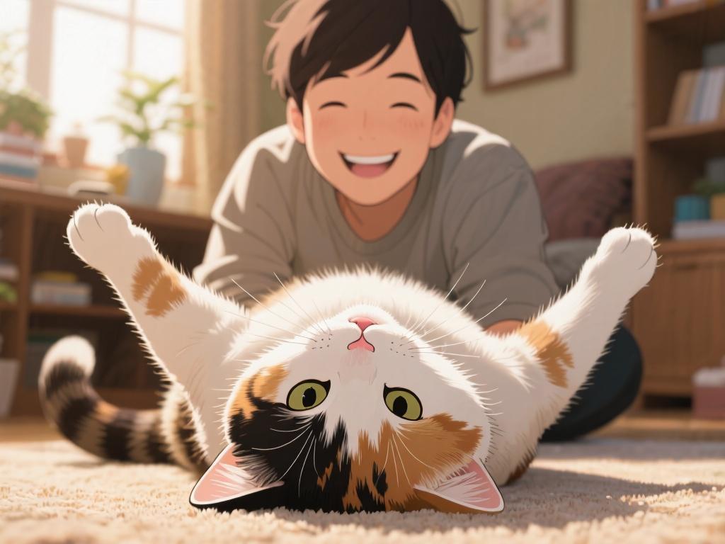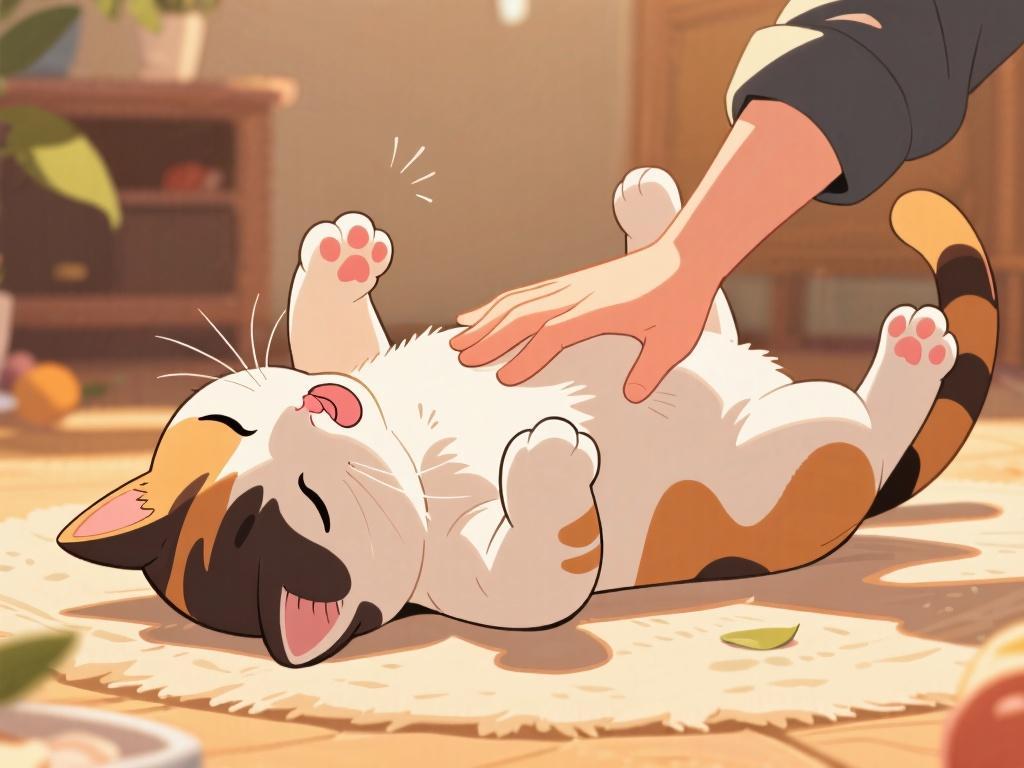 這時,你要是伸手輕輕摸摸它的肚皮,它可能會開心地翻滾一圈,舒服地眯起眼睛。不過要注意,貓咪的肚皮很敏感,摸的時候一定要注意力度和分寸,同時觀察它的反應。