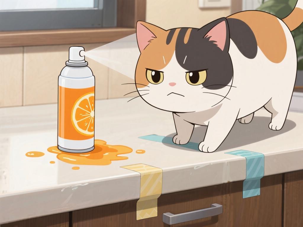 除了收好東西,貓咪喜歡去的檯面,可以噴些它不喜歡的噴霧,像橘子味、薄荷味的,很多貓都不喜歡。對於垂直面,還能採用雙面膠帶,貓不喜歡觸碰雙面膠的感覺,可能就不會去了。