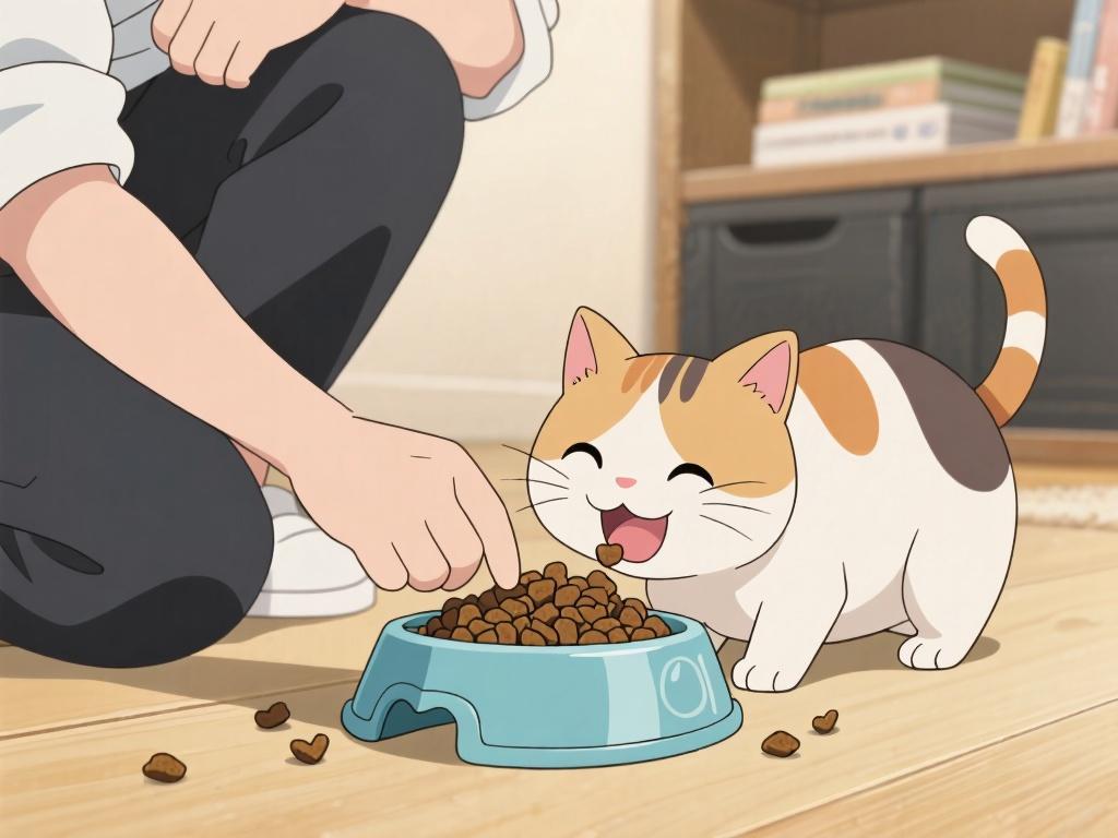 要是貓因爲沒喫的打翻東西提醒你,提前準備好貓糧就能解決。建議採用 “自由採食” 的方式,把貓咪一整天的貓糧先放好,讓它慢慢喫。但要注意,喫完就別再加了,喫多了也不行。