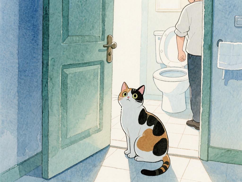 有些被慣壞的小貓,恨不得一天 24 小時都粘着主人,把你當成全職保姆。你走到哪它跟到哪,就連你上廁所它也要跟着。