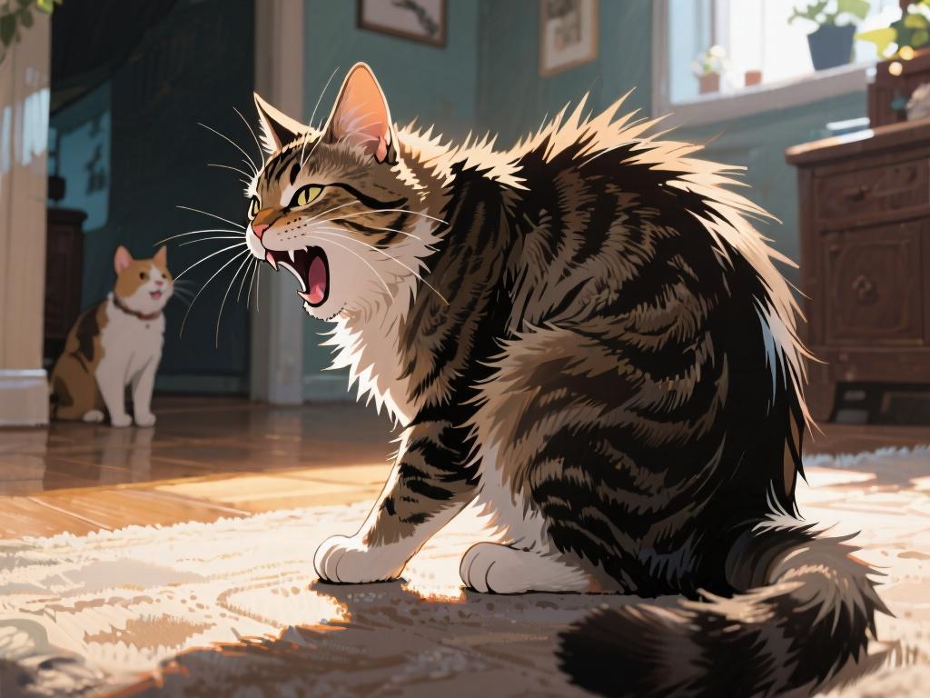 要是家裏來了新客人,或者傢俱換了位置,貓咪可能會感到焦慮,發出比較尖銳的喵喵叫,這是一種 “應激反應信號”。研究表明,持續焦慮的貓,叫聲間隔會縮短到 2 - 3 秒一次,遠低於放鬆時 5 - 8 秒的間隔頻率。要是你家貓經常對着窗戶或門縫低聲嗚咽,可能是外面有陌生貓咪經過,觸發了它的領地意識。有領地焦慮的貓,每天的 “警戒叫” 能達 30 次以上。