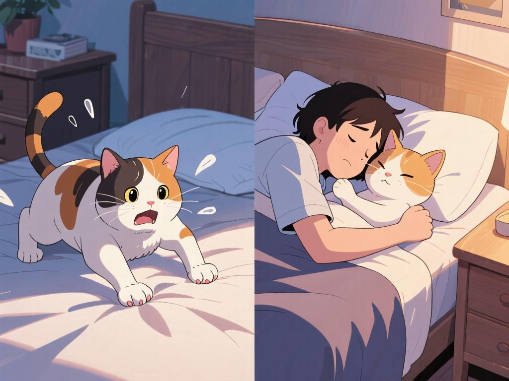從貓的角度看,和主人一起睡覺是關係親密的表現。如果一味拒絕貓咪上牀,貓可能會陷入焦慮,出現亂尿、亂抓傢俱等異常行爲。相反,適度共眠能增進貓與主人的感情,對身心健康都有利。