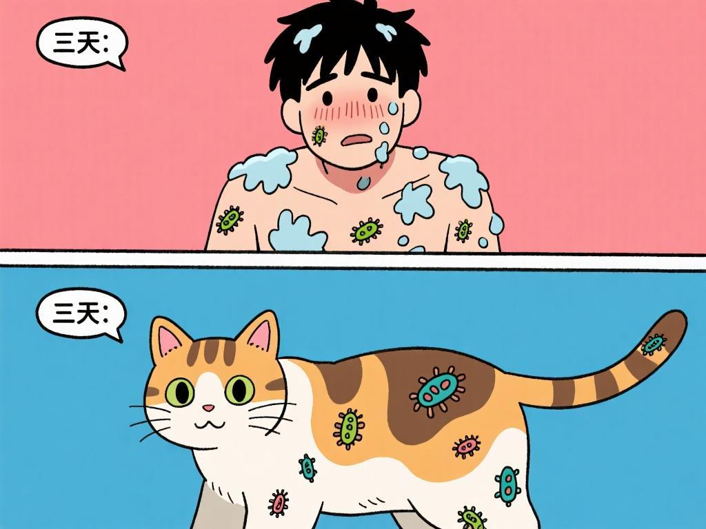 不少人覺得貓 “髒”,毛髮裏有細菌和污垢。但實際上,貓咪每天會花 3 - 4 小時舔舐自己的毛髮,它唾液裏的溶菌酶能有效消滅皮毛表面的常見病菌。研究發現,健康貓咪皮毛的菌羣數量,遠遠低於人們衣服上的菌羣數量。也就是說,我們外出沾染的灰塵、細菌,比貓咪皮毛上的還多。只要貓咪沒有皮膚病,沒接觸太髒的環境,皮毛清潔度完全可以放心。