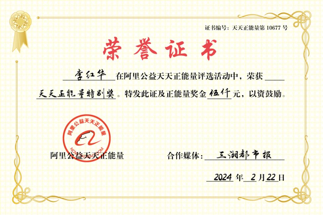 一次次走村串鄉,他敲開了農民的心門。阿里公益天天正能量聯合三湘都市報,爲李紅華頒發天天正能量特別獎及5000元公益金: