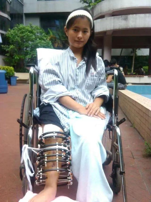 “第一次手術,上了6個鋼圈,把變形的腿斷掉,再用髓內針接起來,那種疼痛無法想象。”咬着牙堅持,如今梁正英前後接受了5次手術,拄着柺杖可以緩慢行走,平常還是輪椅代步。