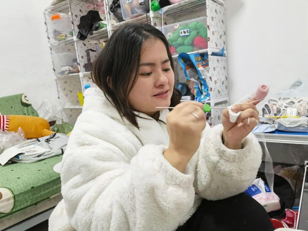 店內需要人手時,梁正英第一時間就想到了和她一樣身患脆骨病的病友們。爲了讓病友儘快上手,她錄製教學視頻,從選毛線到鉤織技術,事無鉅細。
