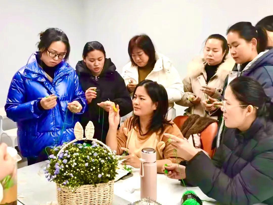 “手工是我最好的選擇,我從小就愛搗鼓這些。”梁正英跟着視頻學習毛線編織,很快學會了做玫瑰花。
