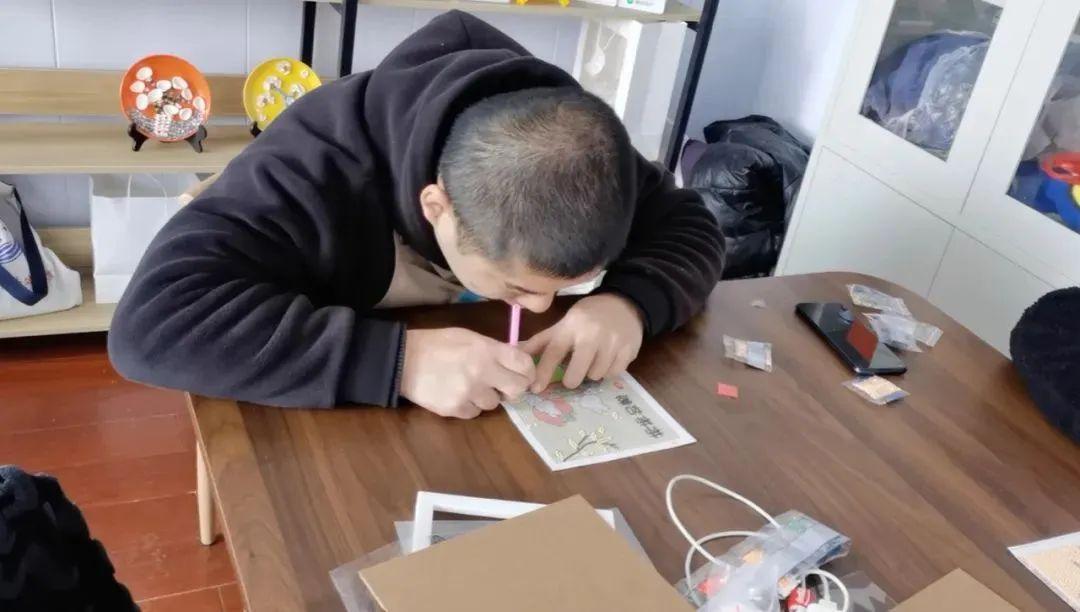 店員們除了洗車工作,空閒時會坐在店裏做鑽石畫,這是在學校裏掌握的一門技藝。季輝會在羣裏進行拍賣,收入也全部拿來補貼員工。在店裏的每一天,他們都過得格外充實。