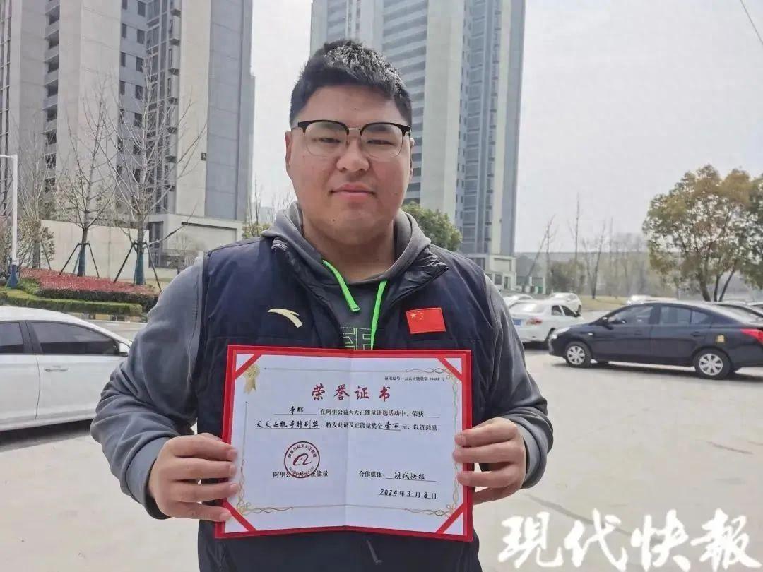 以善良之心,他託舉起唐氏兒的人生。阿里公益天天正能量聯合現代快報,爲季輝頒發正能量特別獎及萬元獎勵: