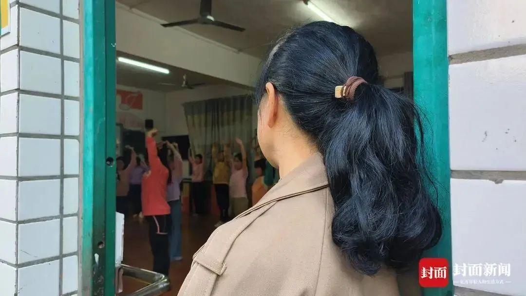 △趙媽媽在教室外觀察女兒上課情況