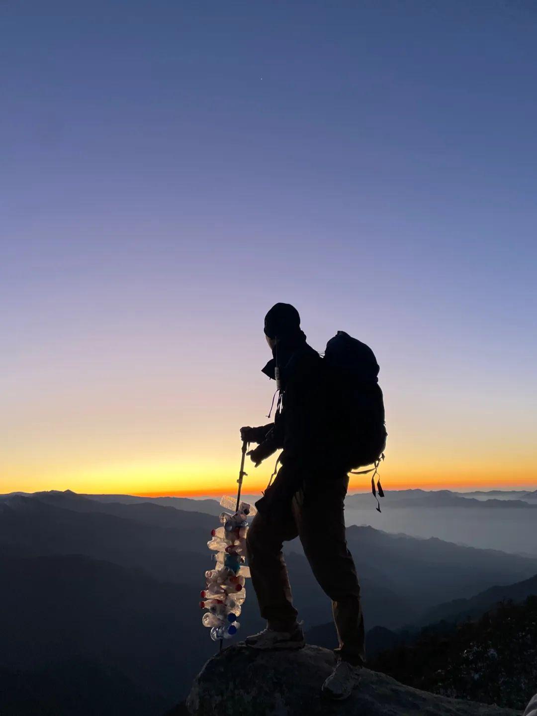 唐佳徒步之旅的第一站,秦嶺的秀美和壯麗給他留下了深刻印象,但沿途所見的塑料瓶也縈繞在他心頭。可惜當時的唐佳沒有經驗,連專業的登山設備都沒有購置齊全,更別說準備撿拾塑料瓶的工具了。