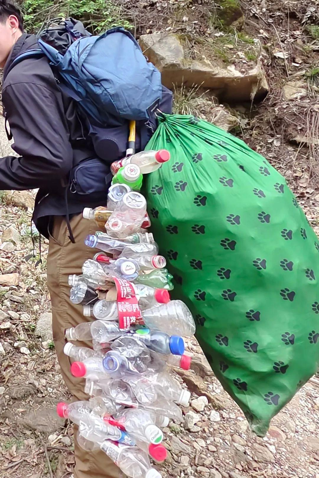 用登山杖串廢品,00後小夥想把秦嶺“撿”乾淨
