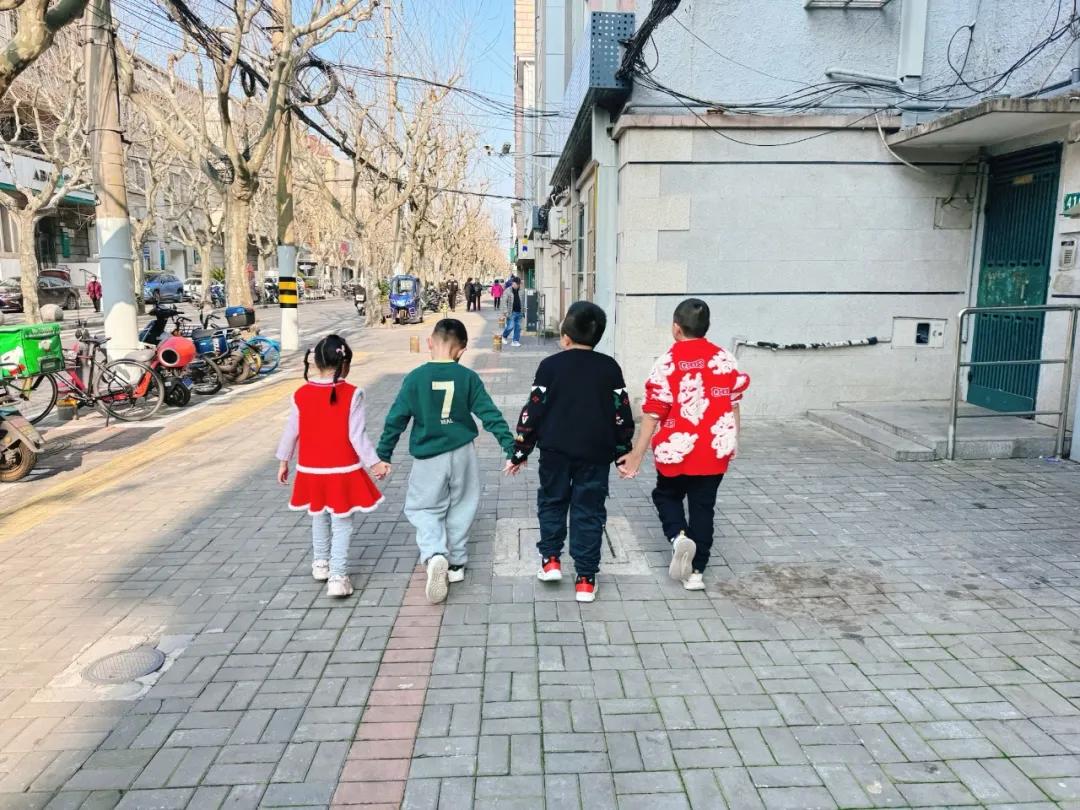 孩子們手拉手去公園