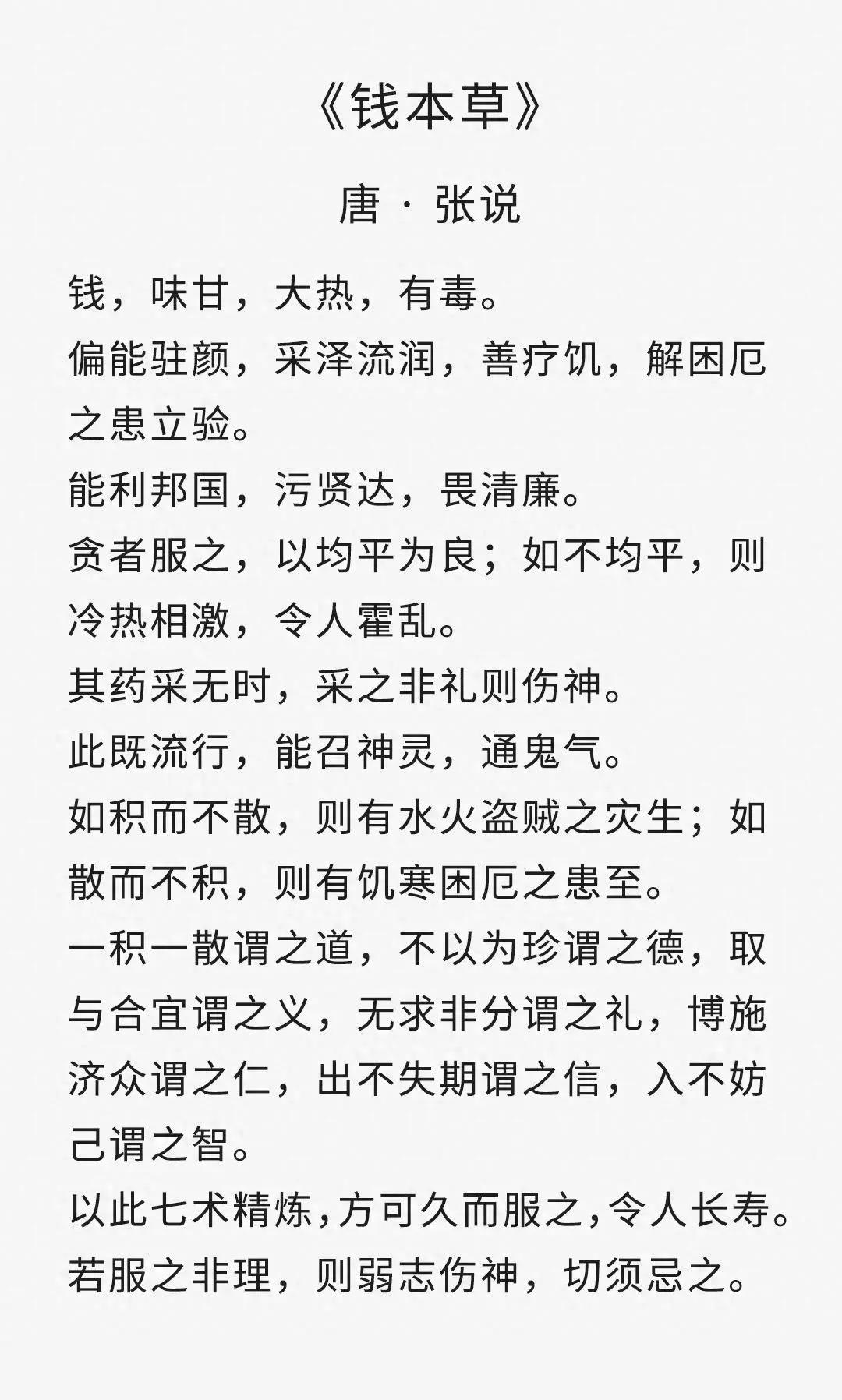 它通篇以藥喻錢,僅用短短188個字,就說透了金錢的本質。