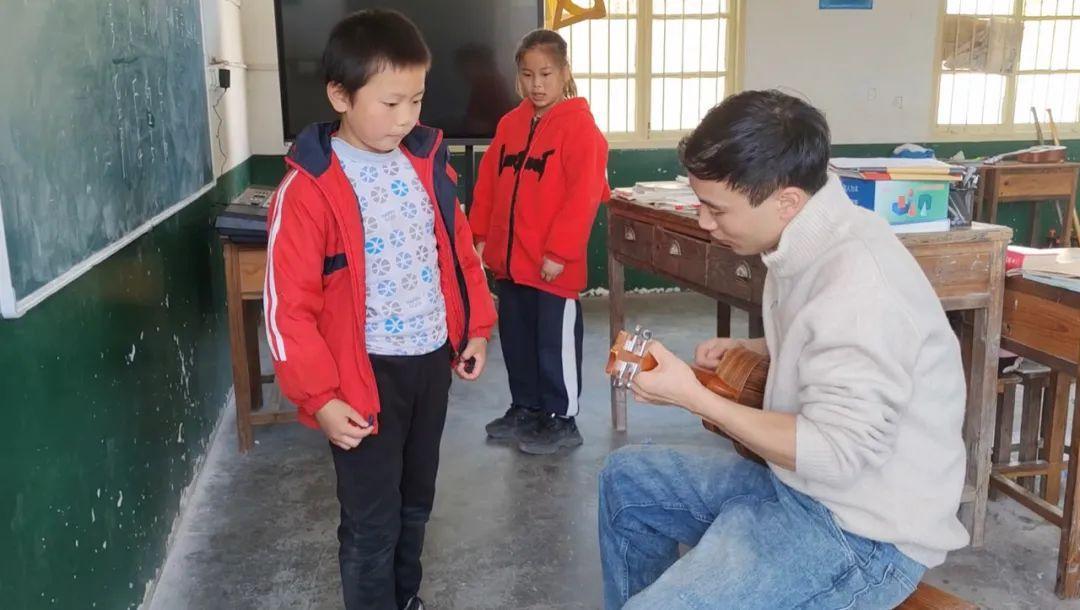2022下半年,音樂志願者文勁來到妙溪小學,開始了他跟孩子們的“音樂奇緣”。