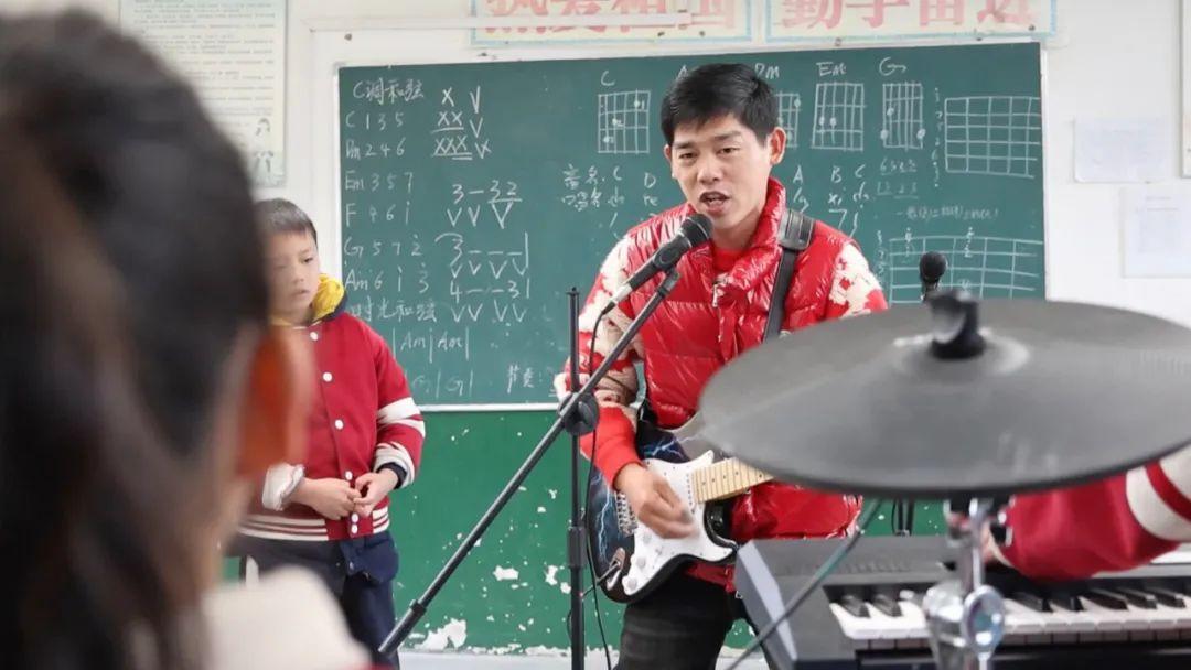 “應聘”的是教學生們音樂,但學校沒有一件樂器,文勁從店裏拿出一批樂器,給孩子們從最基礎的樂理知識講起,讓音樂的種子在他們心裏慢慢萌芽和成長。