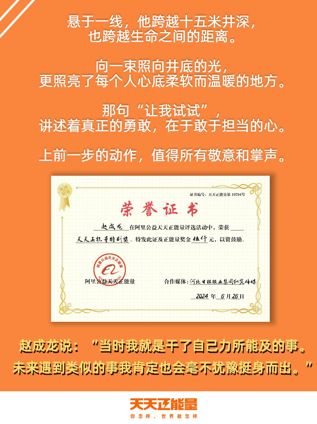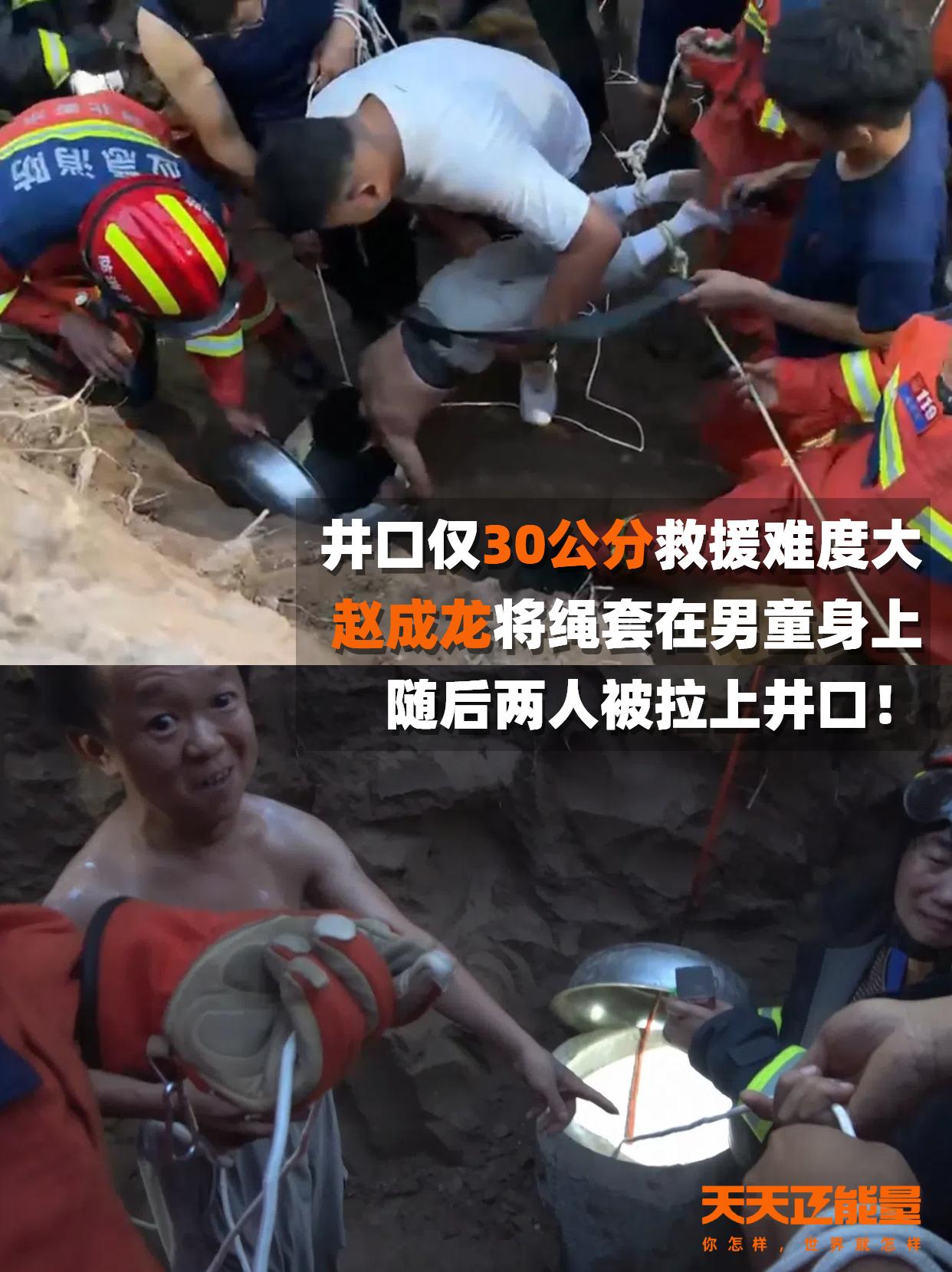 隨後趙成龍被倒着送進井裏,不負所望,他成功將繩套牢牢套在了被困男童身上。