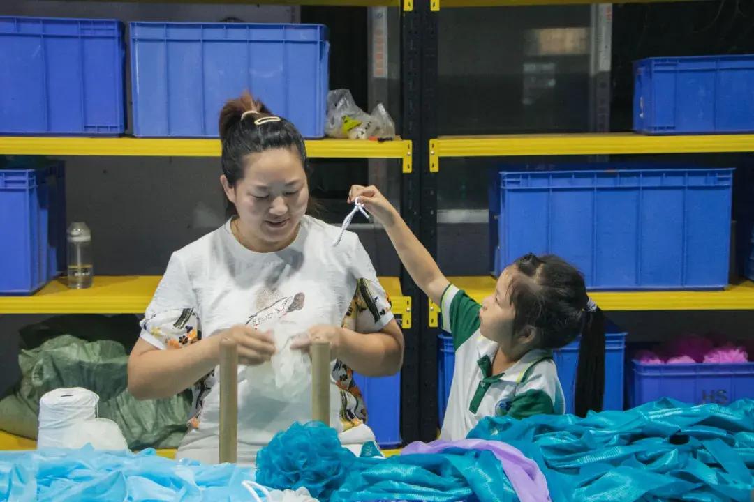 這間工廠,既是寶媽們的工作場所,也是孩子們的童年樂園。