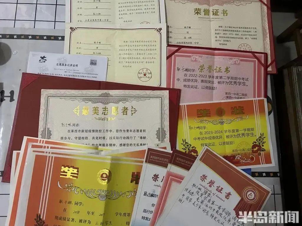 耿千琳父親耿濤的抽屜裏,放着厚厚一沓獎狀,“孩子從小到大,每一份獎狀和證書,我都給貼在牆上,後來牆上貼不開,我就仔細地放進抽屜裏收好。”