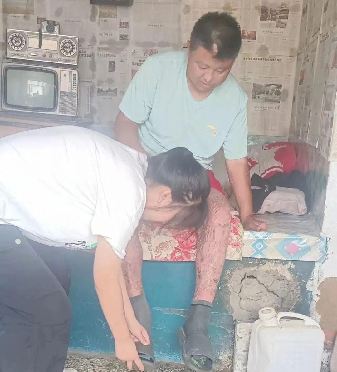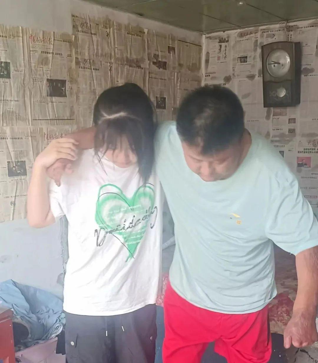 土炕前,女孩小於(化名)一邊爲父親擦藥,一邊關切地囑咐着,隨後小心翼翼地扶着父親起身穿鞋。這一切,她都做的熟練而小心。