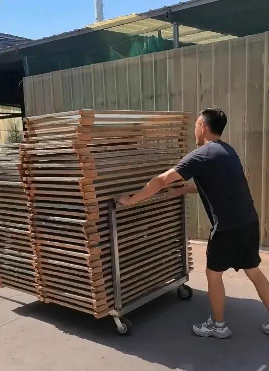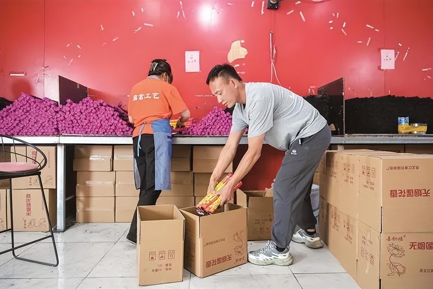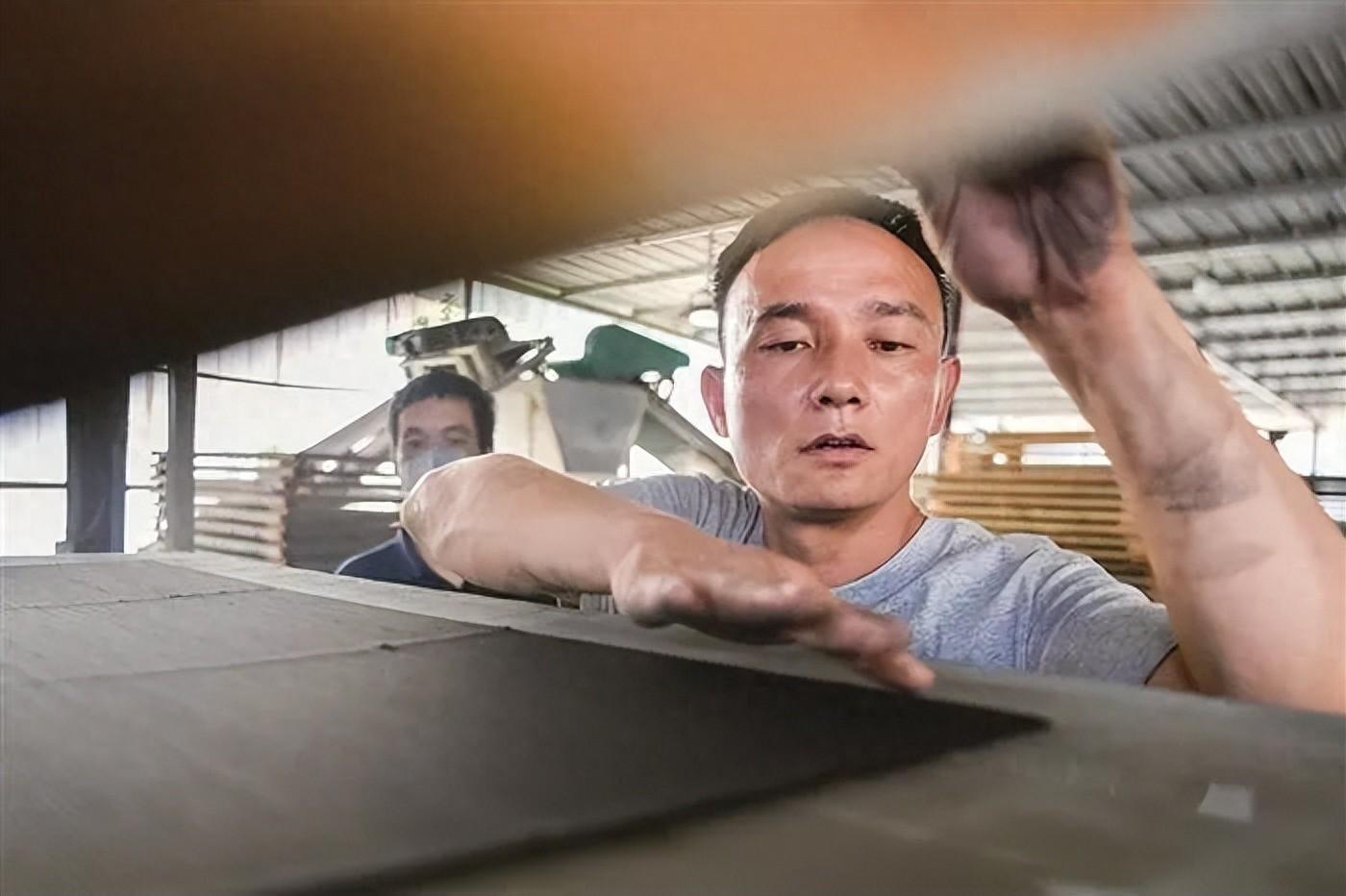 車間外空地上,80後陳濤濤忙着和工人搬運晾曬黑香製品,他賣力地幹着活,臉龐熱得通紅,汗水順着耳根流淌下來。