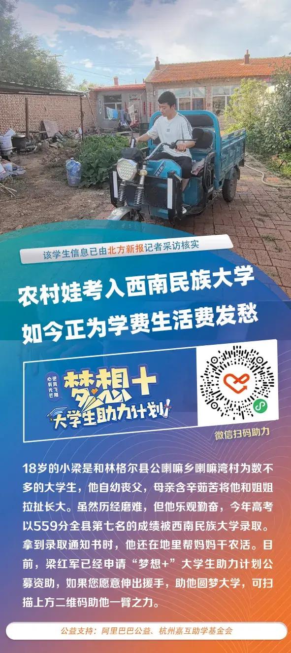 18歲的梁紅軍,是呼和浩特市和林格爾縣公喇嘛鄉喇嘛灣村爲數不多的大學生。