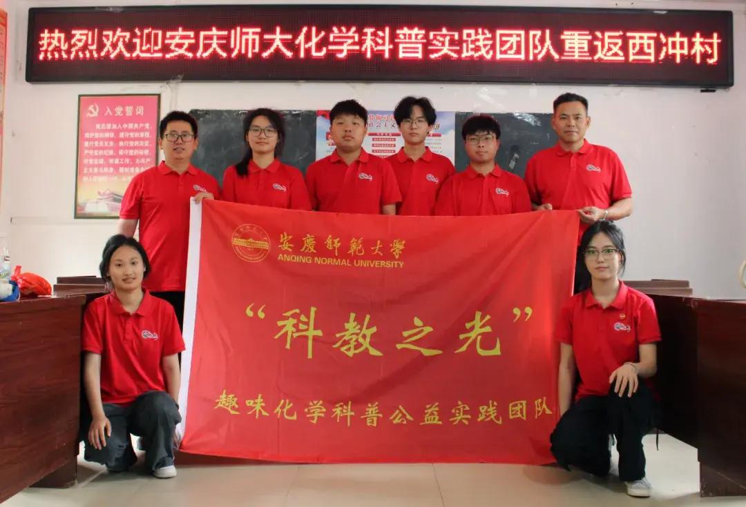 就這樣,2018年的夏天,白國樑作爲安慶師範大學趣味化學科普公益實踐團指導教師,帶隊組成趣味化學科普“三下鄉”團隊,第一次領着幾名大學生來到了太湖縣西衝村,開展科普活動。