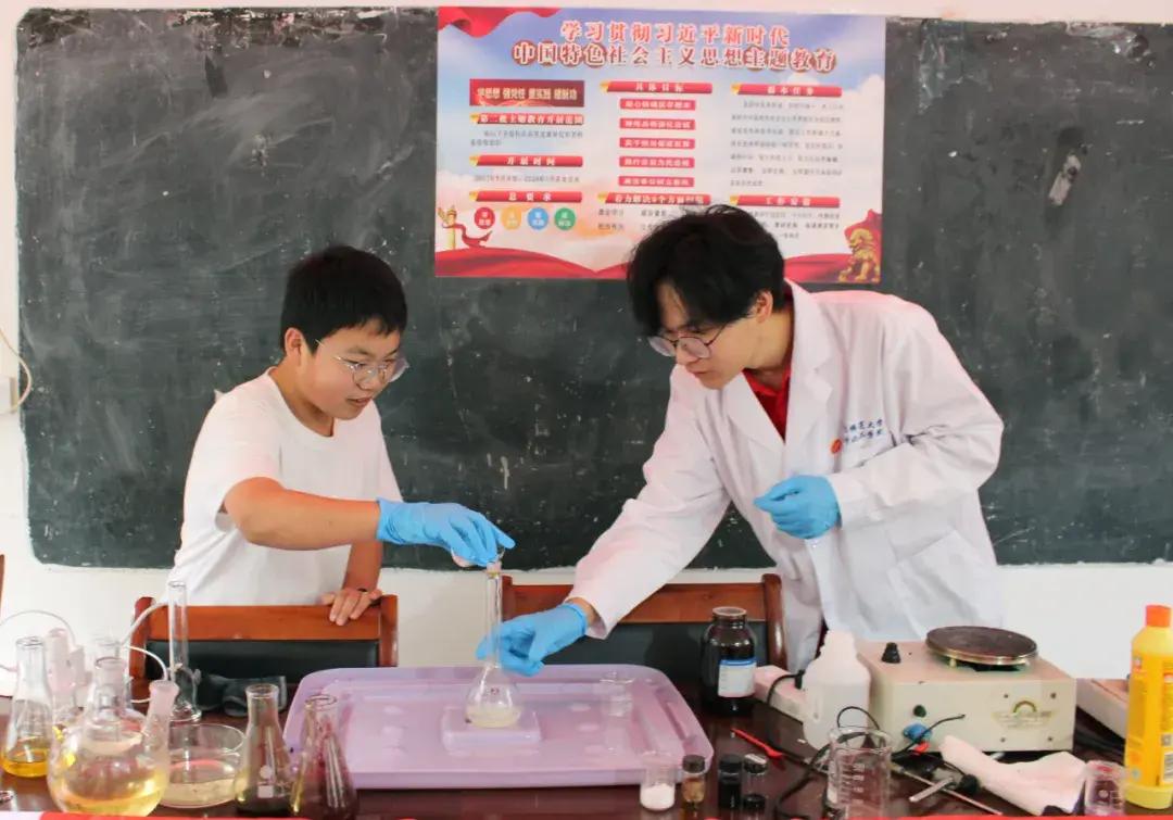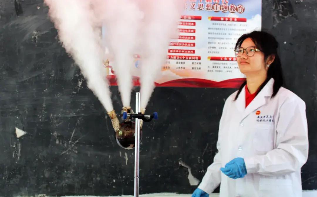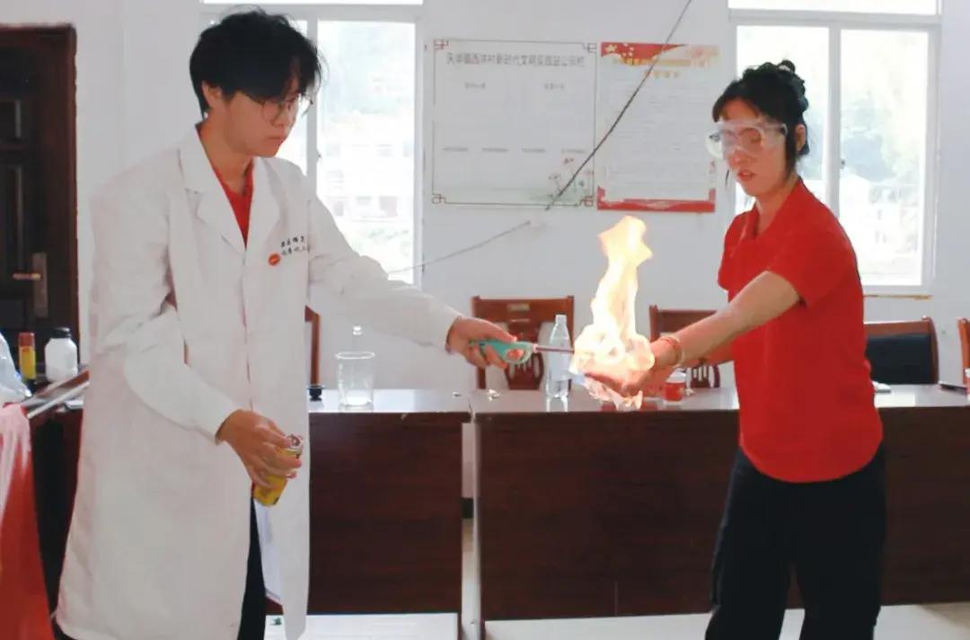 “希望通過這種方式,讓孩子們愛上化學,感受科普的魅力。在去西衝村的車上,我們還在一遍遍打磨實驗方案。”團隊新成員、材料化學專業2023(1)班的儲健同學談起這件事,充滿了幹勁。