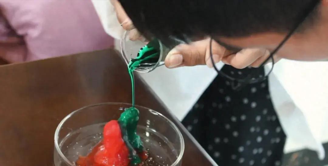當時團隊的條件相對簡陋,大家利用燒杯、試管等簡易器械做了四個簡單的化學實驗,很快引起了孩子們很大的好奇。