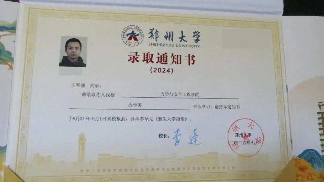 目前,他以605分成績被鄭州大學錄取,這個曾遭遇重創的家又燃起希望。
